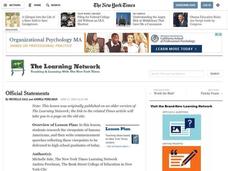 Students research the viewpoints of famous Americans, and then write commencement speeches reflecting these viewpoints to be delivered to high school graduates of today.