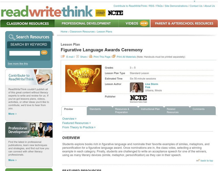 Contains plans for five to seven lessons that teach about figurative language like similes, metaphors, and personification by asking students to write award acceptance speeches that incorporate them. In addition to objectives and...