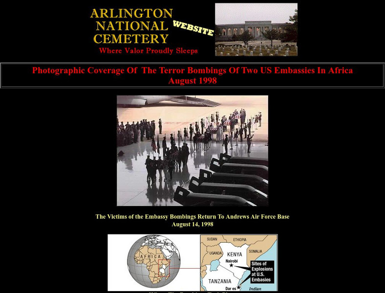This site from the Arlington National Cemetery provides several photographs of the terrorist bombings on U.S. embassies in Africa in August of 1998. The text is very brief, but the pictures tell a lot.