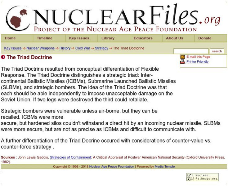 Summarizes the policy of assured destruction under the three-prong strategy known as the Triad Doctrine.