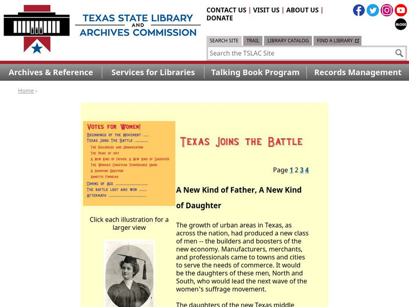 Texas State Library and Archives Commission: Texas Joins the Battle: A New Kind of Father, a New Kind of Daughter