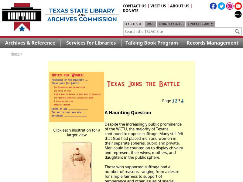 Texas State Library and Archives Commission: Texas Joins the Battle: A Haunting Question