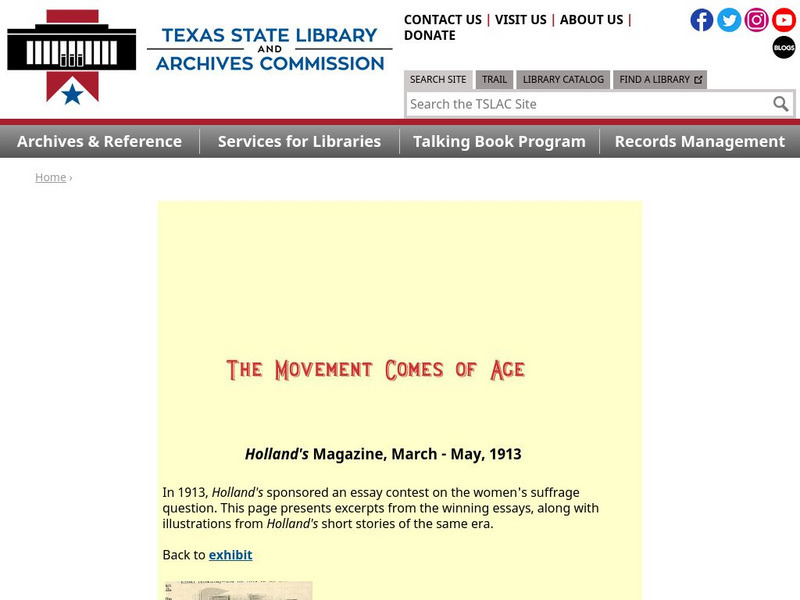 Texas State Library and Archives Commission: The Movement Comes of Age: Holland's Magazine, March May, 1913