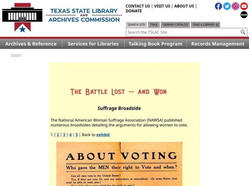 Texas State Library and Archives Commission: The Battle Lost and Won: Suffrage Broadside