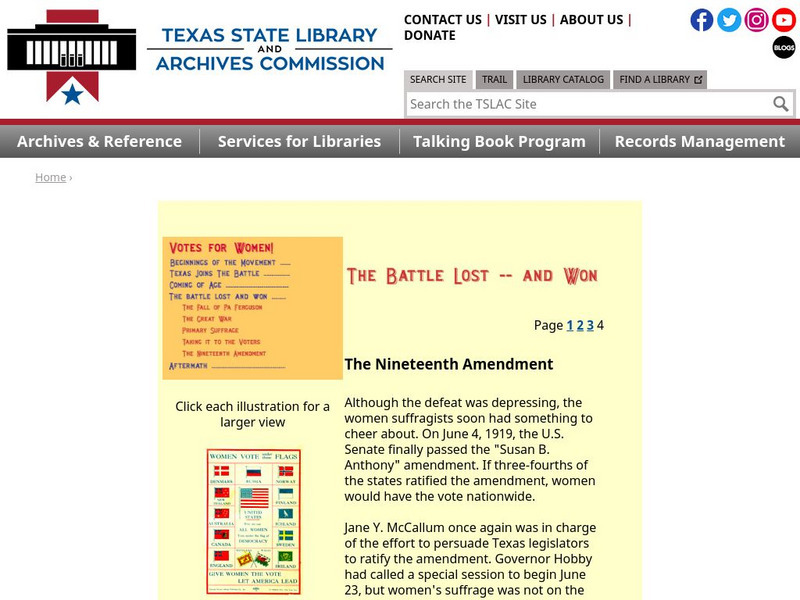 Texas State Library and Archives Commission: The Battle Lost and Won: The Nineteenth Amendment