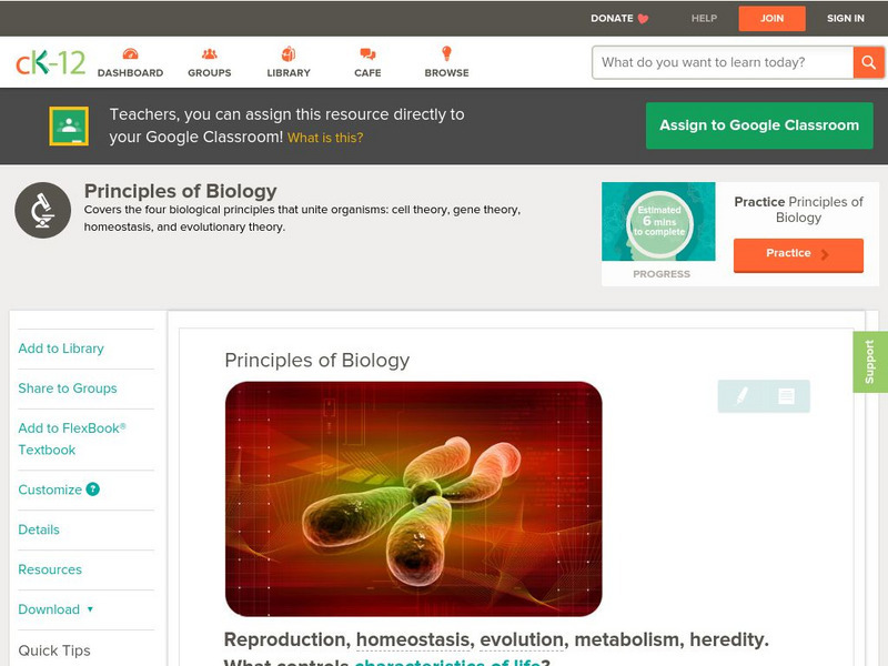 [Free Registration/Login may be required to access all resource tools.] Covers the four unifying principles of biology.