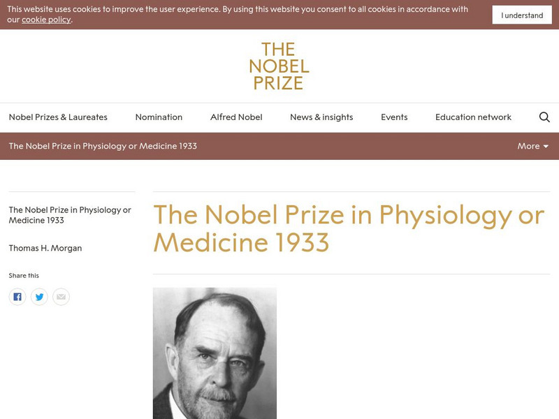 At this site from The Nobel Foundation you can read about Thomas Hunt Morgan, the scientist who won the Nobel Prize in Medicine "for his discoveries concerning the role played by the chromosome in heredity." This website is organized...