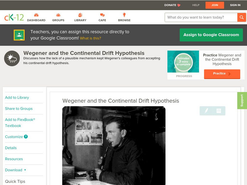 Ck 12: Earth Science: Wegener and the Continental Drift Hypothesis