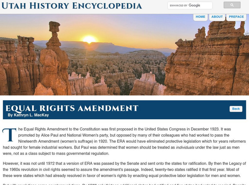 Uen: Utah History Encyclopedia: Equal Rights Amendment