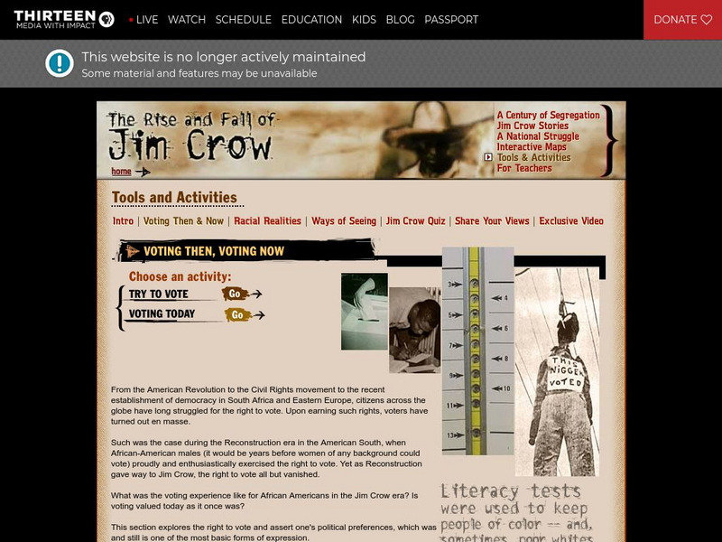 Wnet: Thirteen: The Rise and Fall of Jim Crow: Voting Then, Voting Now
