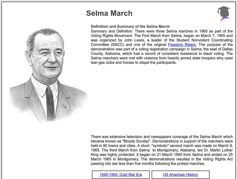 The Selma Freedom March from Selma to Montgomery, Alabama took place in March 1965 as part of the voting rights movement.