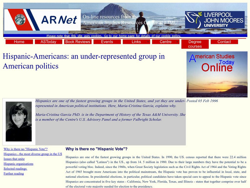 An excellent description of the problems facing the involvement of Hispanic-Americans in American politics. The essay covers 1948 to 1996, with a good discussion of the civil rights era.