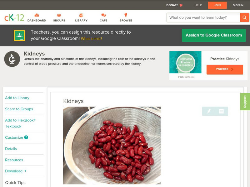 Great learning exercises to check your understanding of the kidneys. Complete this problem set and if you miss an answer you are taken to a tutorial that is very useful. This is a good site to use for research as well as checking for...