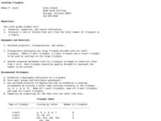 Sixth graders examine triangles in a figure. In this geometry lesson, 6th graders establish a method for counting triangles within a given figure. Students discover that the total number of triangles is the sum of all numbers counted.