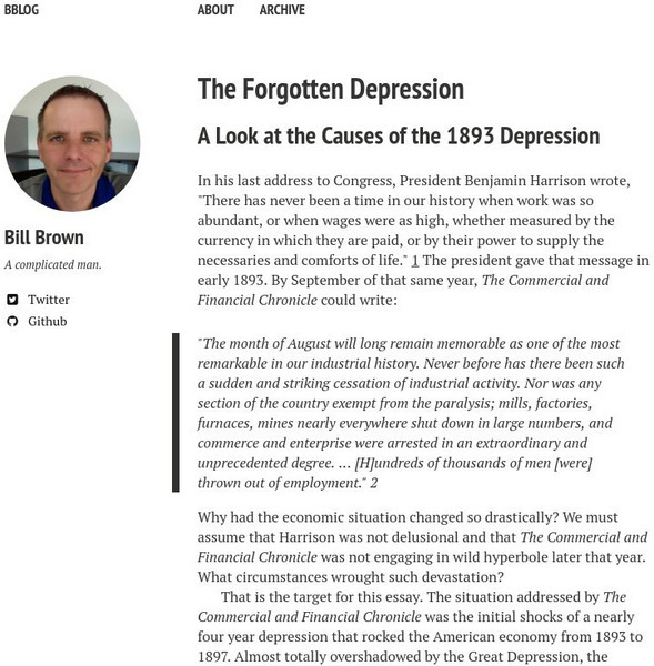 Article discussing what has been written about the 1893 Depression, and how its importance has been overshadowed by, and it has been less analyzed than, the Great Depression.