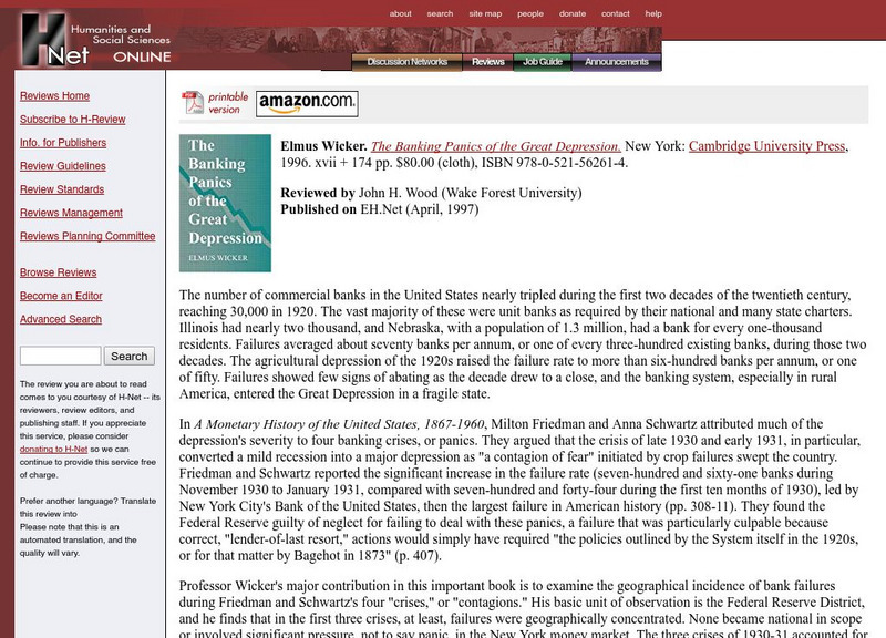 The bank runs and bank failures of the 1930s are described here, as well as personal interviews with people who experienced the Great Depression.