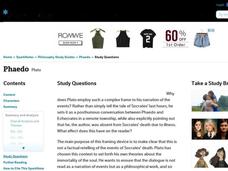 In this online interactive history worksheet, students respond to 10 short answer and essay questions about Phaedo by Plato. Students may check some of their answers on the interactive worksheet.
