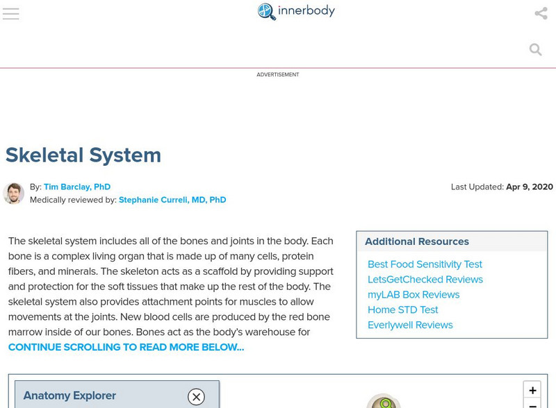 This site has a skeleton with points to click on. Each click brings up information on that part in a separate window. If the windows are resized next to each other, it's point, click, and read.