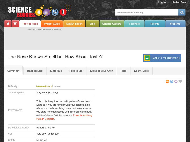 Science Buddies: The Nose Knows Smell but How About Taste?