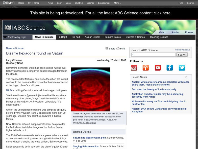 Australian Broadcasting Corporation: News in Science: Bizarre Hexagons Found on Saturn