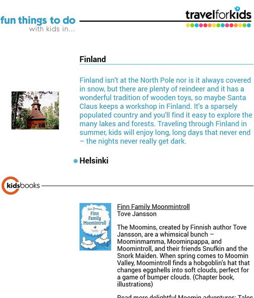 "Finland isn't at the North Pole nor is it always covered in snow." This site lets younger students explore the geography and culture of Finland.