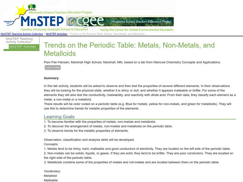 Serc: Trends on the Periodic Table: Metals, Non Metals, and Metalloids