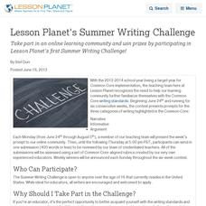 Take part in an online learning community, and win prizes by participating in Lesson Planet's first Summer Writing Challenge!