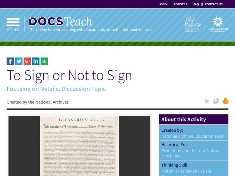 Use this lesson in the middle of a Revolutionary War unit. Students will analyze sections of the Declaration of Independence to answer critical thinking questions. Upon completion of the unit, students will reevaluate their responses to...