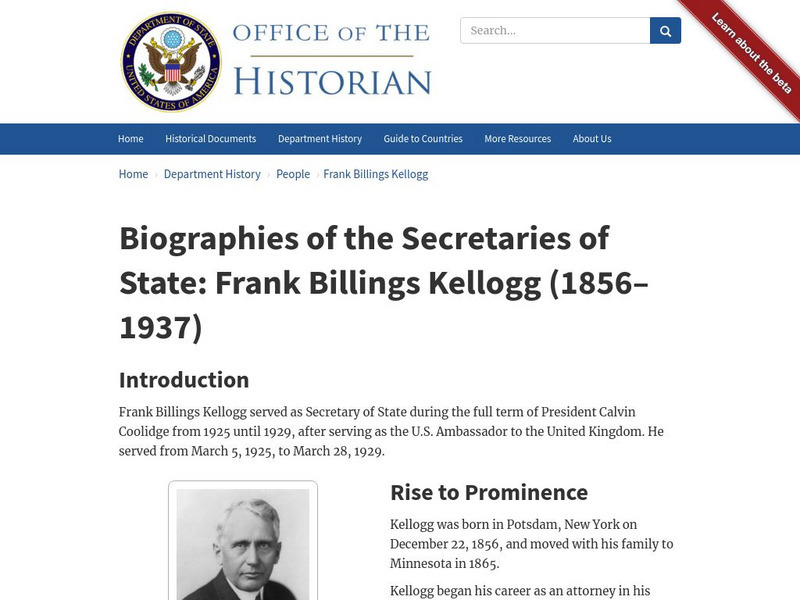 Biographies of the Secretaries of State: Frank Billings Kellogg (1856 1937)
