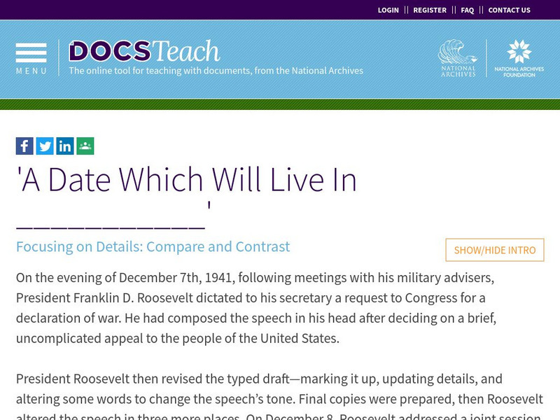 Docs Teach: "A Date Which Will Live in ": Two Versions of Fdr's Infamy Speech