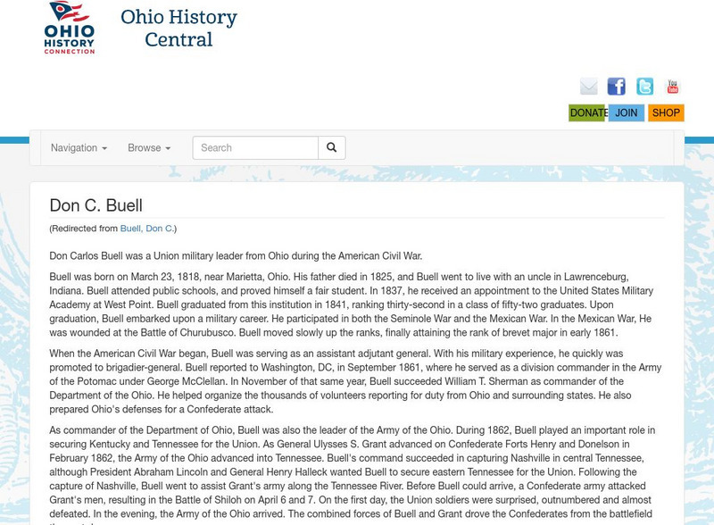 Read this biography of Union general, Don Carlos Buell. Find out about his command, and the reasons he was relieved of that command.