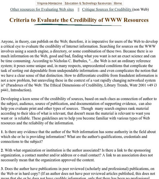 Gmu: Virginia Montecino: Criteria to Evaluate the Credibility of Www Resources