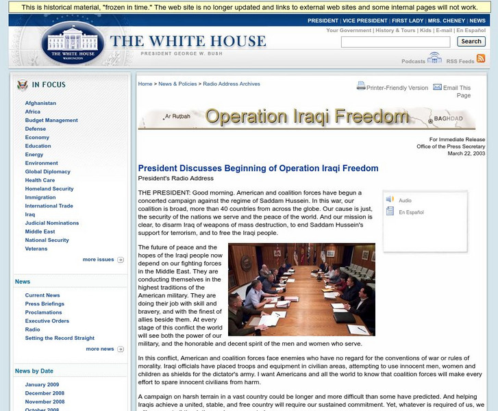White House: President Discusses Beginning of Operation Iraqi Freedom