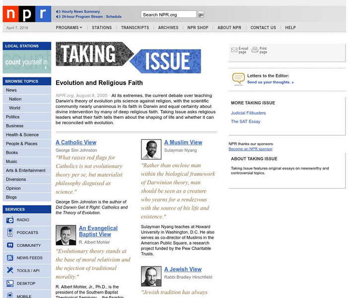 Npr: Taking Issue: Evolution and Religious Faith