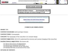Fifth graders discuss the process of sedimentation and the continental drift theory. They locate major structures on the ocean floor and they identify life forms at each level of the ocean.