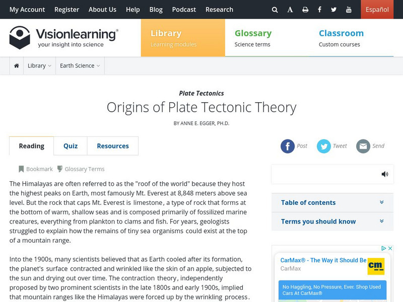 Visionlearning: Plate Tectonics: The Origin of Plate Tectonic Theory