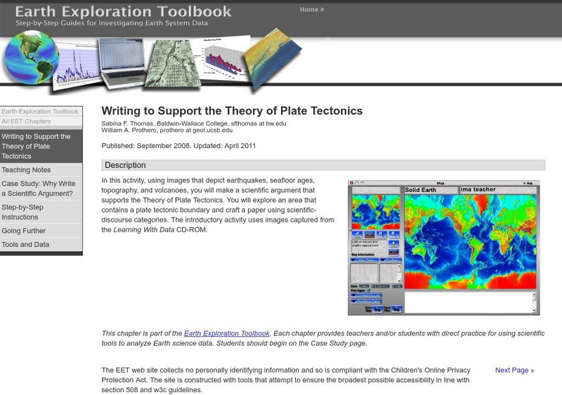 This lesson helps students use images that depict earthquakes, seafloor ages, topography, and volcanoes, and then make a scientific argument supporting the Theory of Plate Tectonics.