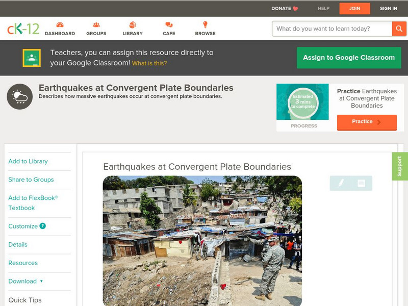Ck 12: Earth Science: Earthquakes at Convergent Plate Boundaries