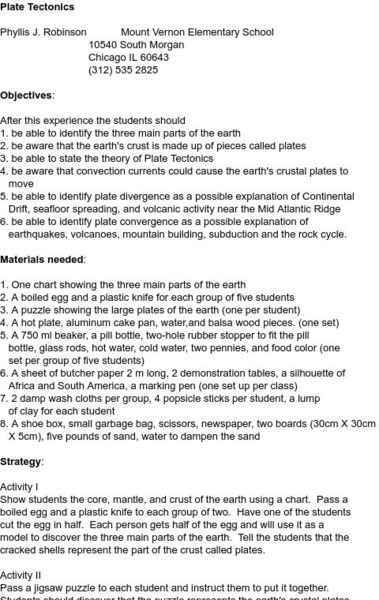 What can a hard-boiled egg tell you about the Earth? Check this site out to learn. Be sure to click on "Plate Tectonics activity" for a graphic representation.