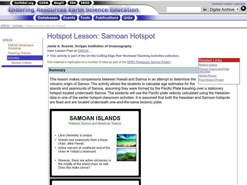 Using the Hotspot Theory and Plate Velocities, students make comparisons between Hawaii and Samoa in an attempt to determine the volcanic origin of Samoa.