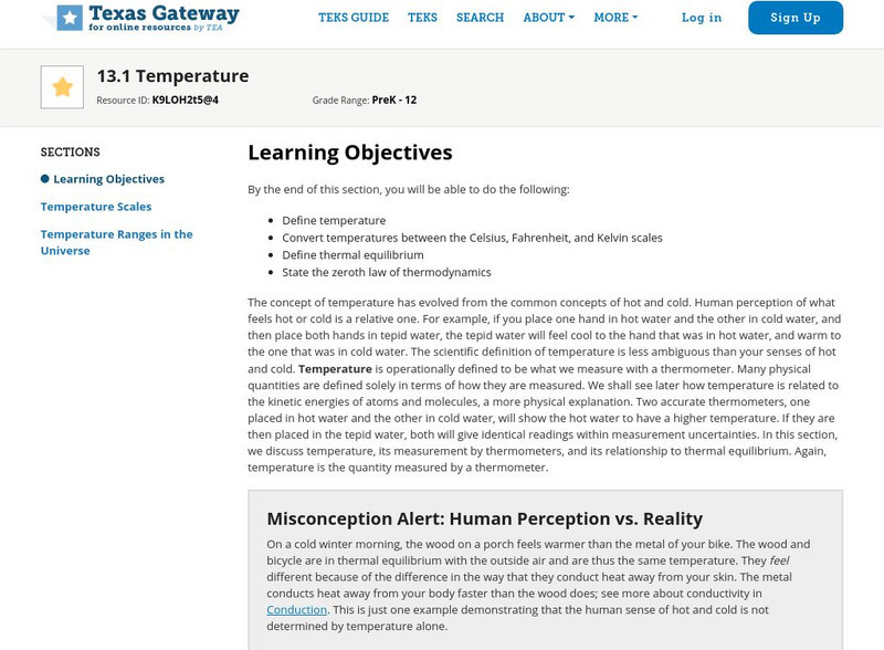 Texas Gateway: Temperature, Kinetic Theory, and the Gas Laws: Temperature