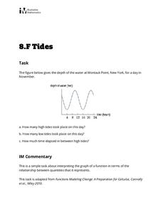A very simple example of a functional relationship between depth of water and time is shown here. In fact, it might be more useful to use a coastal tide book to better illustrate this real-world experience. Pupils are to count the number...