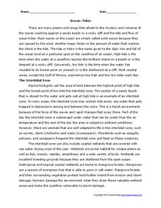 In this ocean tides worksheet, students read 2 pages about ocean tides and answer true or false questions about it. Students complete 10 questions.