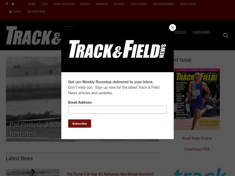 Track and Field News provides viewers with high school, college, and elite track and field information and news.