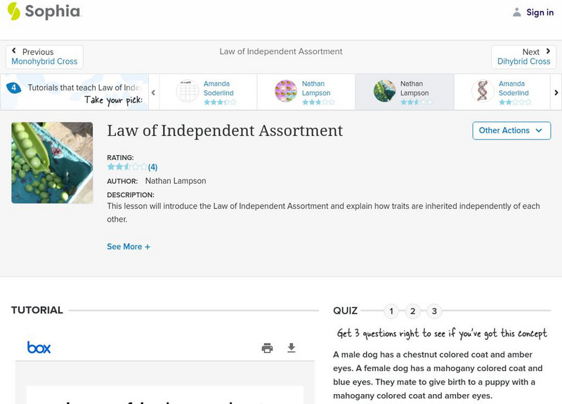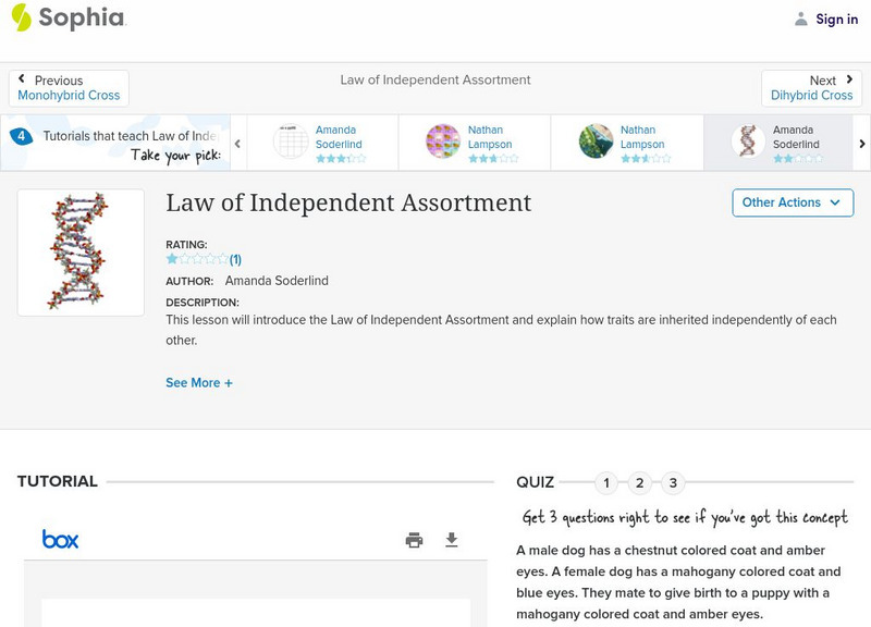 This lesson will introduce the Law of Independent Assortment and explain how traits are inherited independently of each other. It is 3 of 4 in the series titled "Law of Independent Assortment."