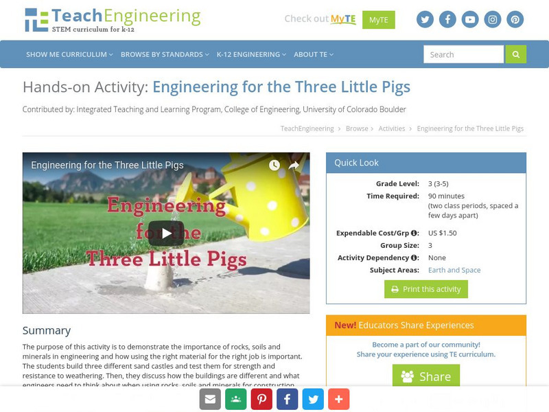 The purpose of this activity is to demonstrate the importance of rocks, soils and minerals in engineering and how using the right material for the right job is important. The students build three different sand castles and test them for...