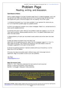 Students review the elements for a successful play review. In this play review lesson, students work in groups to complete peer responses, a consensus activity, and tally activity. Students write a play review. A Peer Review Sheet is...