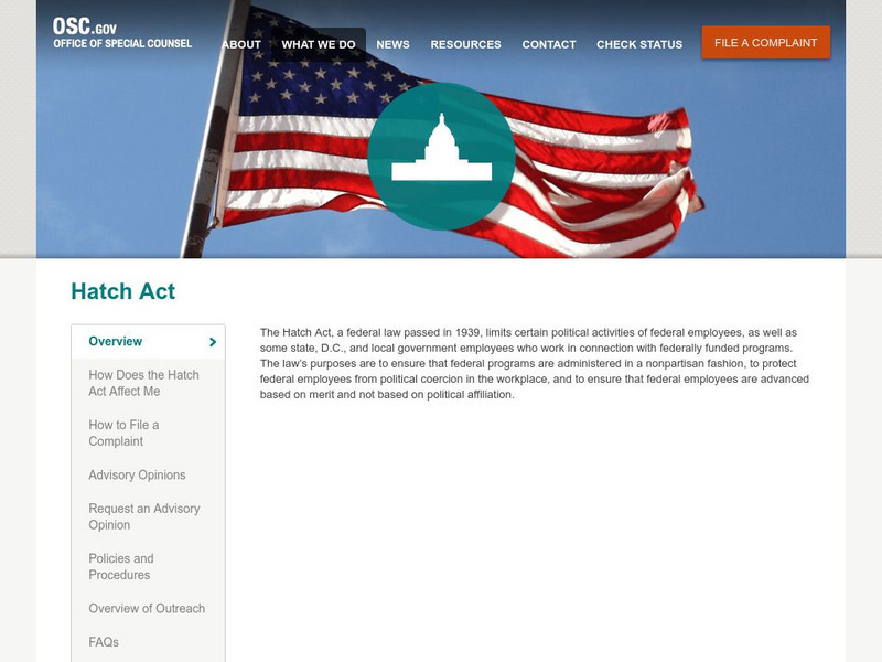This comprehensive resource details the provisions of the Hatch Act of 1939 and how this affects the political behavior of government employees.