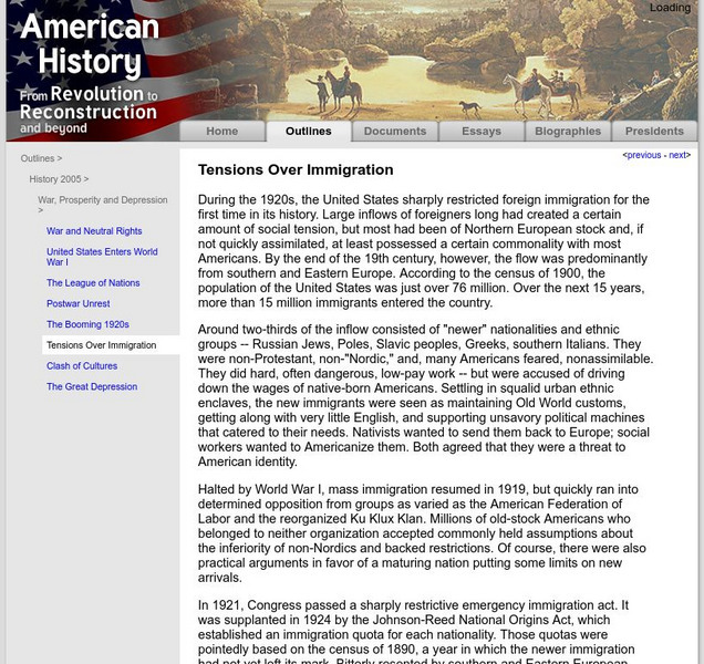 Section addresses U.S. tensions over immigration and government policies affecting the number of immigrants allowed to enter the U.S. after World War I.