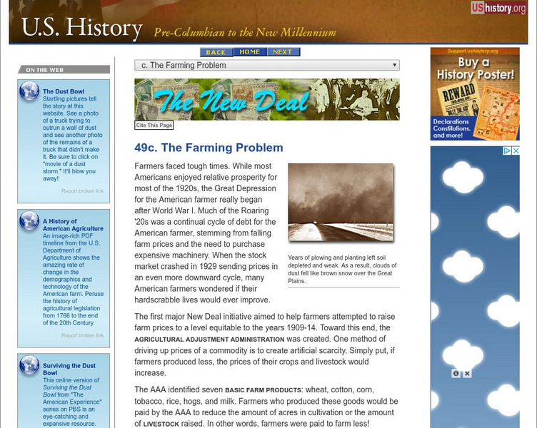 The farm crisis began years before the stock market crash and was made worse by the Great Depression. Read about the legislation that was passed to stabilize commodity prices and help farmers stay on their farms.
